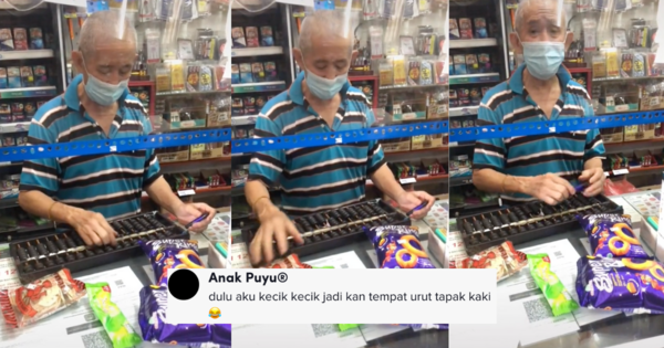 Dia kemudian pergi kaunter untuk membayarnya. Namun, apa yang lebih menarik perhatian adalah apabila uncle itu mengira harga barangan lelaki itu dengan menggunakan sempoa.