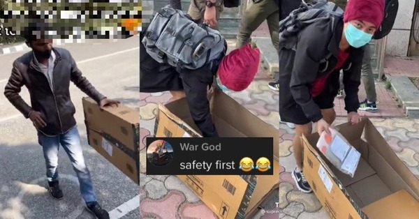 Namun, lain pula yang berlaku kepada lelaki ini apabila barang yang dibelinya secara online dihantar menggunakan kotak besar mencuri tumpuan.