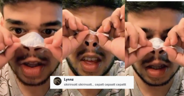 Apa yang lebih melucukan adalah apabila gaya dia semasa menarik nose strips itu. Lelaki itu dilihat sedang menahan kesakitan semasa menanggalkan pelekat dari hidungnya.