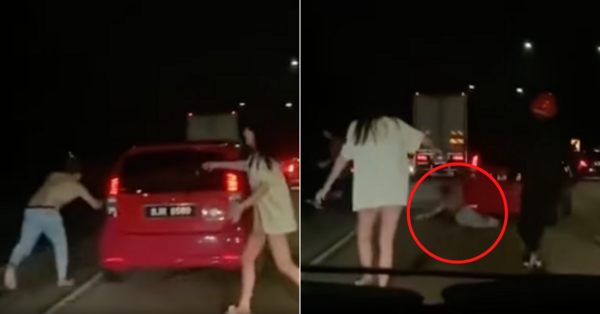 The 23-second video that has gone viral shows the aftermath of the multi-vehicle collision and the moment the Chinese man is dragged away by a Perodua Myvi.