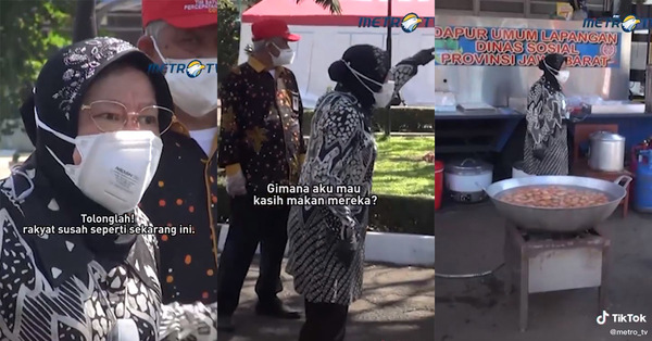 According to a video posted by Indonesian news agency Metro TV on TikTok, Risma – her nickname among locals – was visiting the kitchen at Wyataguna Hall in Bandung, West Java last Tuesday, 13 July.