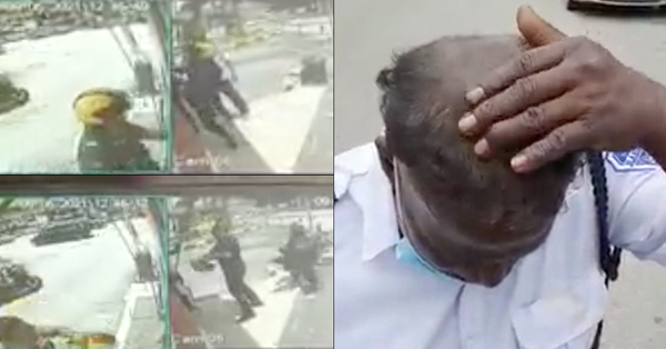 A closed-circuit television (CCTV) footage showing the PDRM officer, who was in full uniform at the time, kicking the 59-year-old security guard and hitting him with his jacket has gone viral.