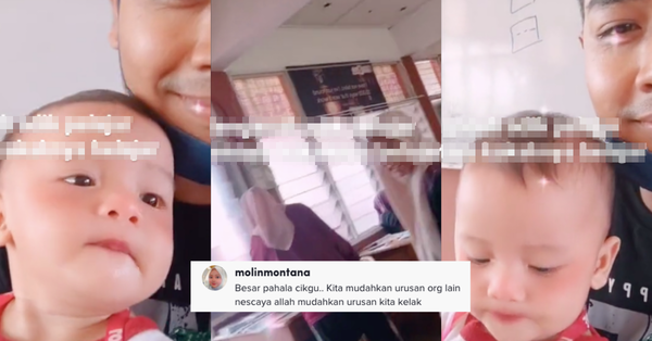 “Pelajar minta izin bawa adik sebab takda yang jaga kat rumah. Lepas tu dalam kelas, kakak tak dapat fokus. Last-last cikgu ambil mengasuh sambil mengajar. Senyap dan behave je baby ni. Doakan pelajar saya cemerlang SPM”, tulisnya.