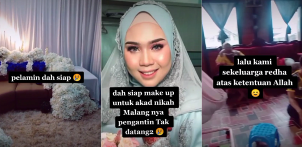 “Pelamin dah siap, Hantaran pun dah siap. Dah siap makeup untuk akad nikah. Malangnya pengantin tak datang-datang”