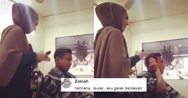 Apa yang lebih melucukan adalah ketika wanita berkenaan sibuk mencukur di bahagian tepi sideburn lelaki itu, dia dengan tidak semena-mena melakukan kesilapan sebaik saja lelaki itu memberikan pickup line kepadanya.