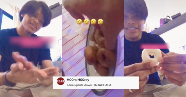 Si suami lantas mengatakan “Ingat Starbucks je ada upside down? Kuih keria pun ada upside down” membuatkan netizen gelak sakan.