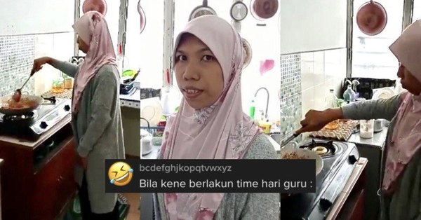 Bukan itu saja, api gas dapurnya juga dilihat tidak dipasang membuatkan ramai terhibur melihat gelagat isterinya yang masih mengacau sambal udang itu.