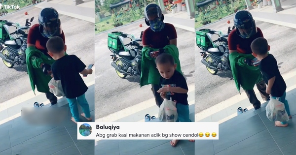 Namun, lain pula dengan video yang tular di TikTok apabila wajah seorang budak lelaki ketika mengambil makanan daripada abang Grab menghiburkan hati ramai.