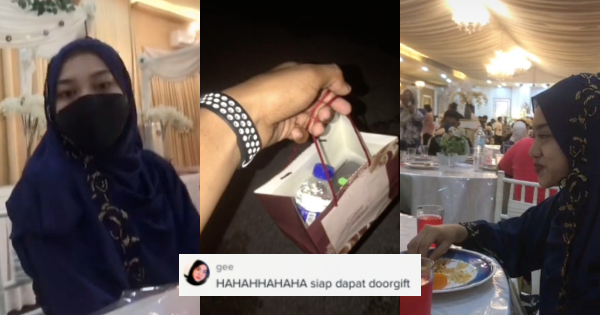 Apa yang membuatkan netizen terhibur adalah lelaki tersebut bersama teman wanitanya tetap menjamu selera sambil menahan malu dan mereka juga diberikan door gift oleh tuan rumah.