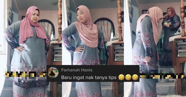 Menerusi video yang dimuat naik oleh @nadotdude, kelihatan wanita itu yang memakai baju kurung menunjukkan perbezaan badannya selepas enam bulan diet.