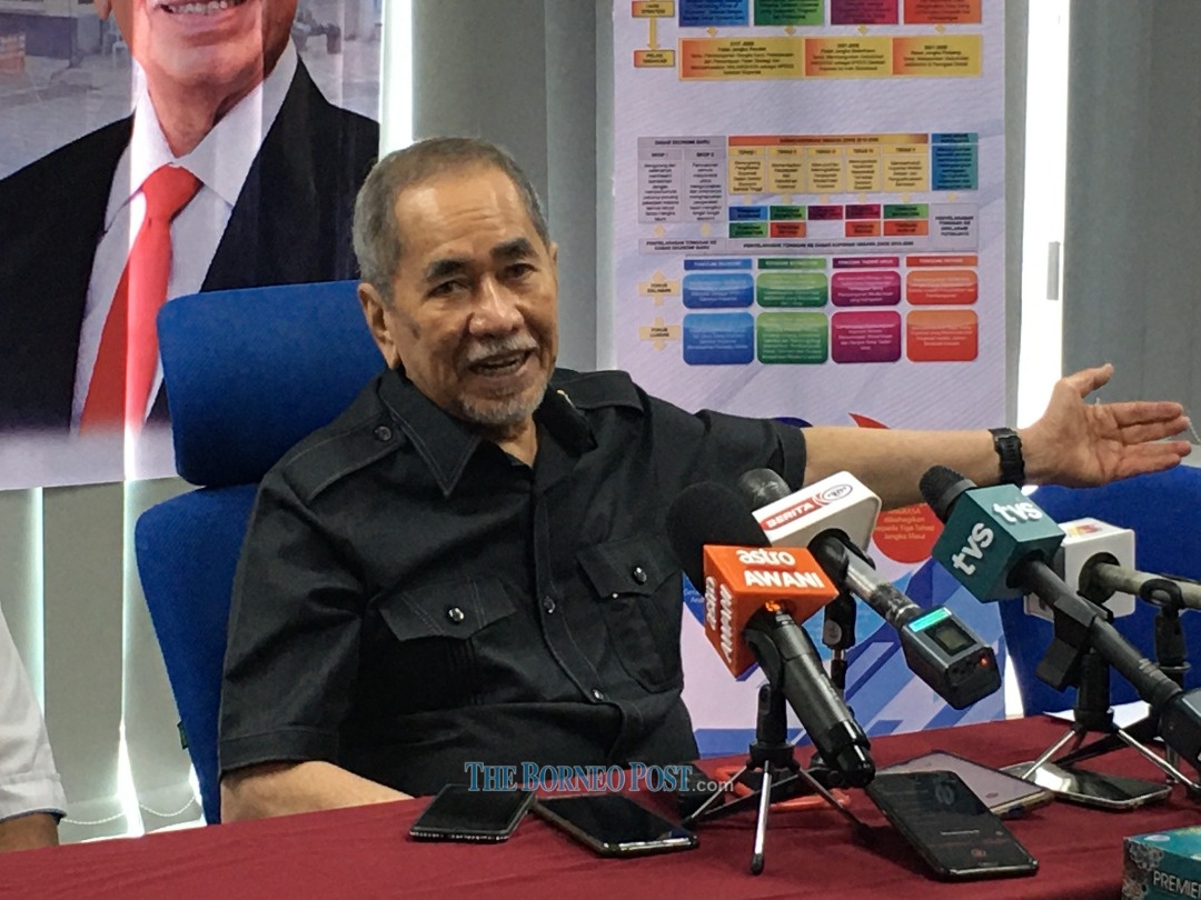 Wan Junaidi speaking to reporters at a press conference at Angkasa Sarawak headquarters in Matang.