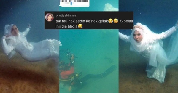 Wanita Ini Ambil Gambar Kahwin Dalam Laut, Tapi Tak Sangka Hasilnya Pula Buat Ramai Ketawa