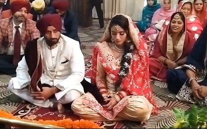 Manpreet, 28, mengenakan sut perkahwinan Punjabi yang lengkap dengan serban, sementara Illi Najwa kelihatan memakai pakaian pengantin Punjabi ketika mereka bertukar ikrar perkahwinan.